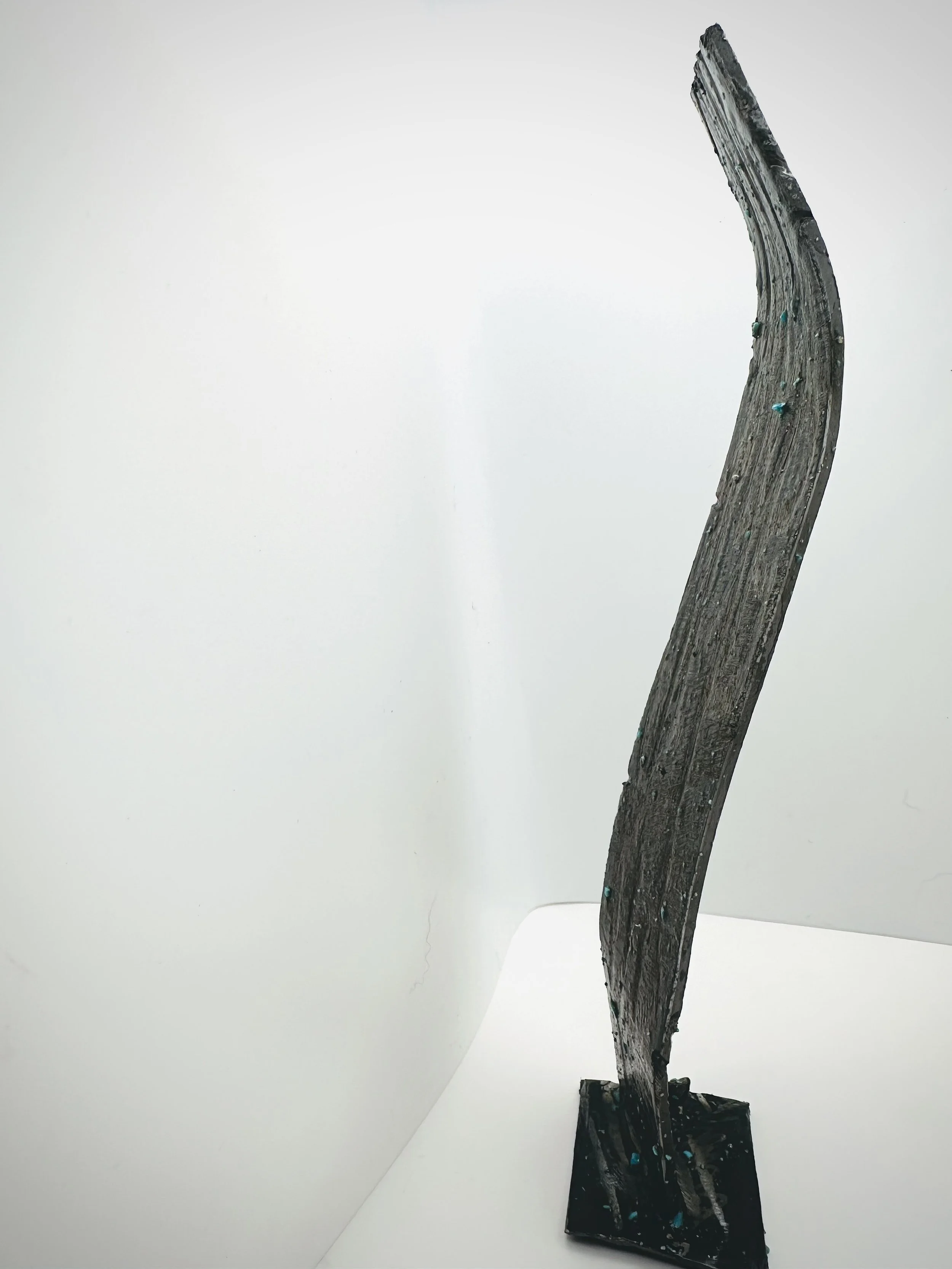 metal_0082 February 04, 2026 by Tyler W. Weaver in 2026w06 Two flat steel rods and a glaze of ground up turquoise shards from earlier failed experiments.